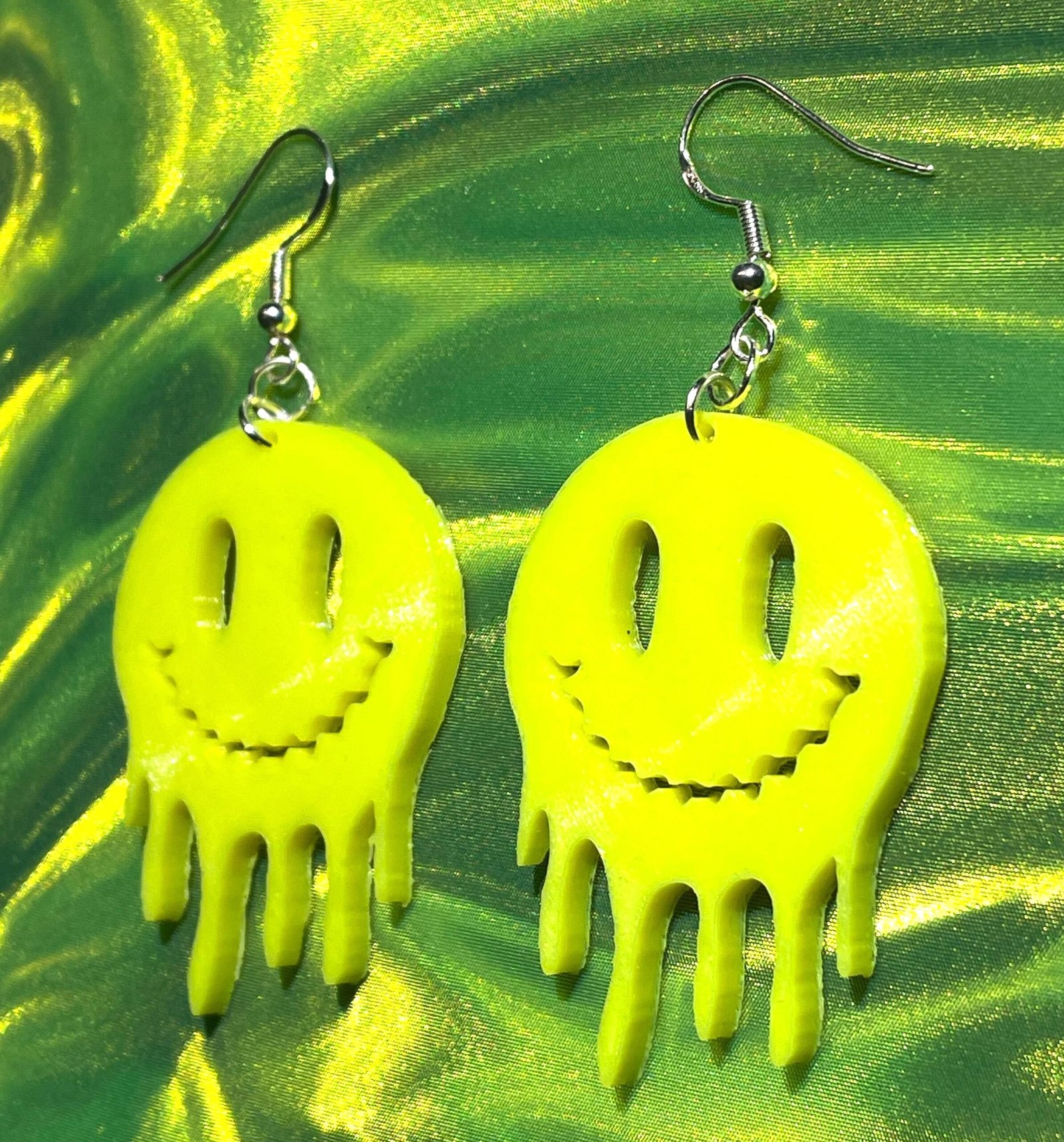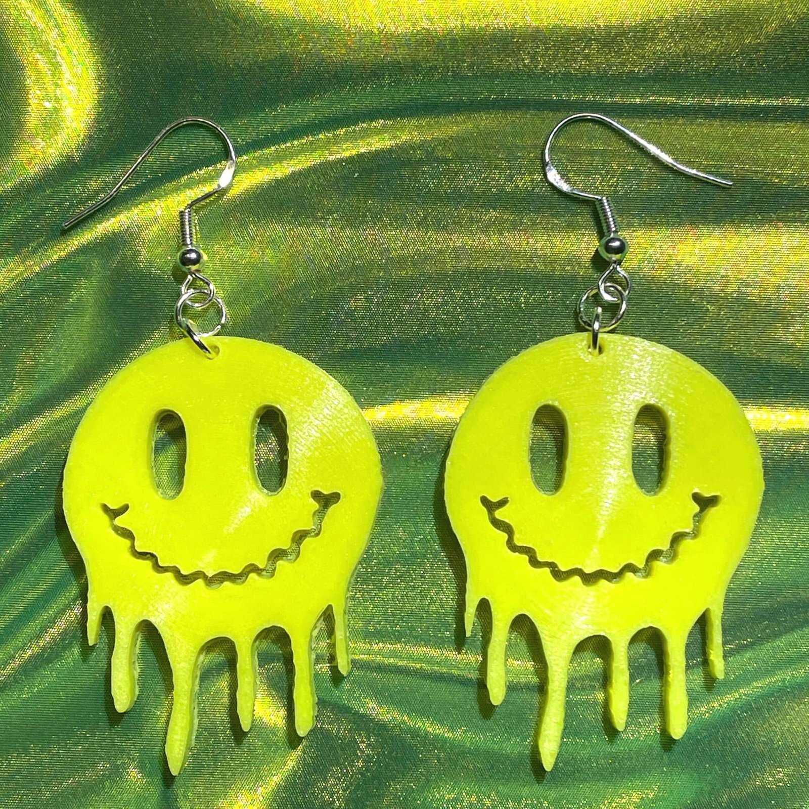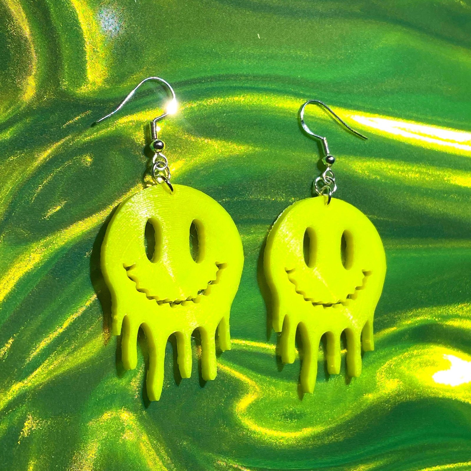Pimentez vos looks avec ces boucles d’oreilles smiley dégoulinants ultra flashy, dessinées et fabriquées par mes soins !