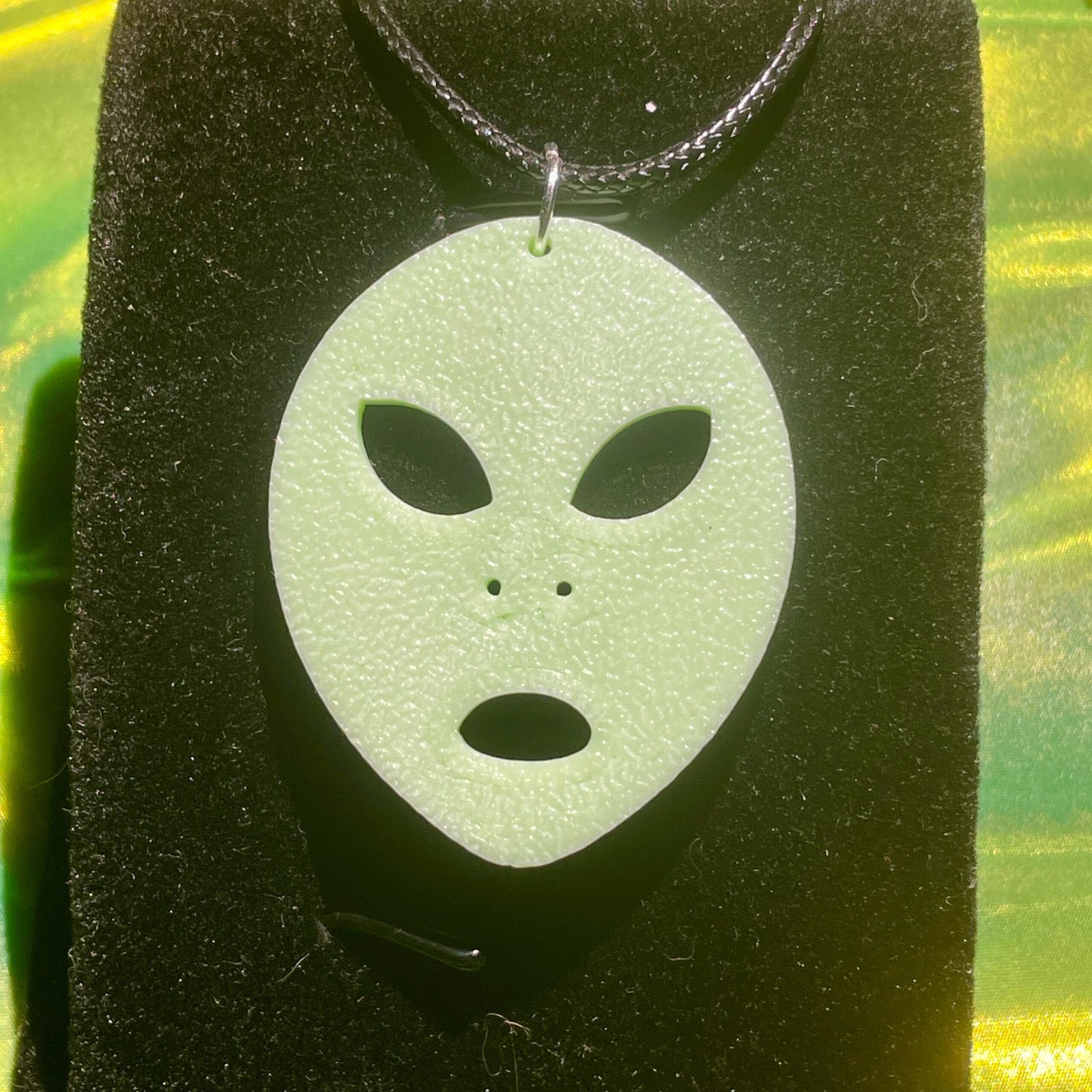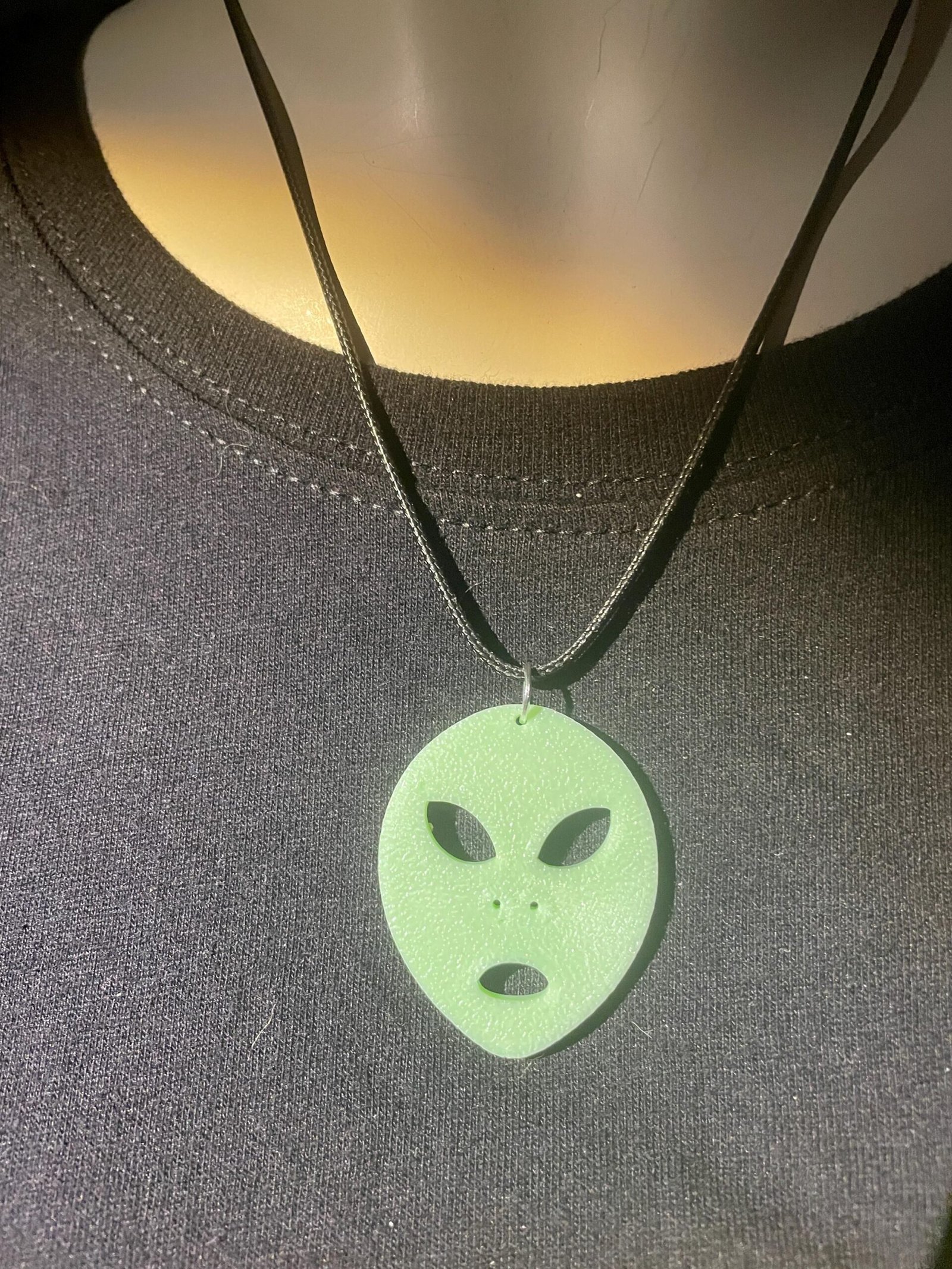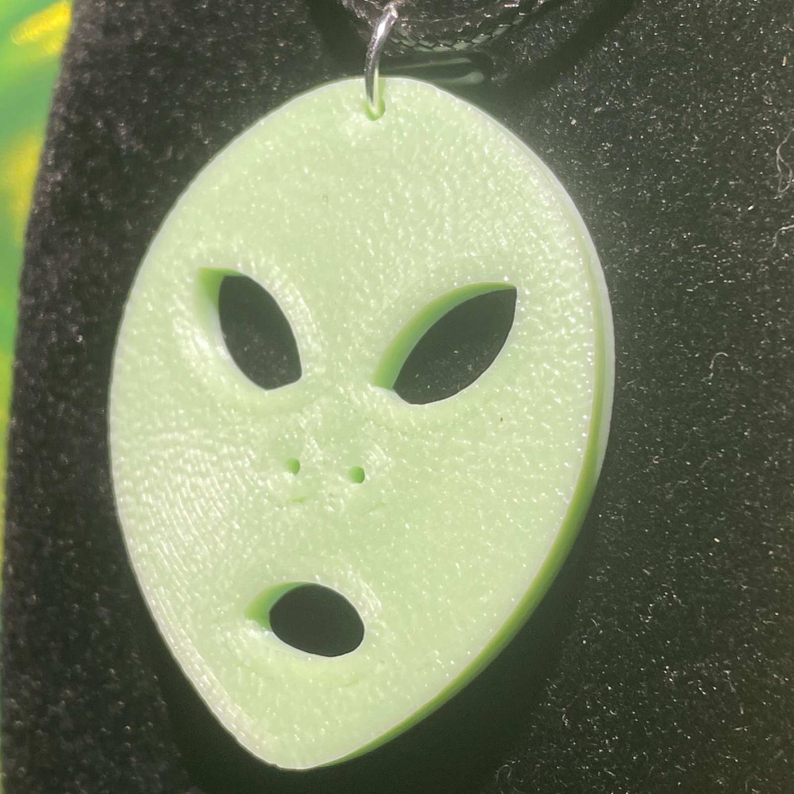 Ce pendentif alien est une création artisanale, dessinée et imprimée en 3D par mes soins. Il représente une tête d’alien au regard expressif et à la bouche légèrement étonnée, à la fois drôle et mystérieuse.
