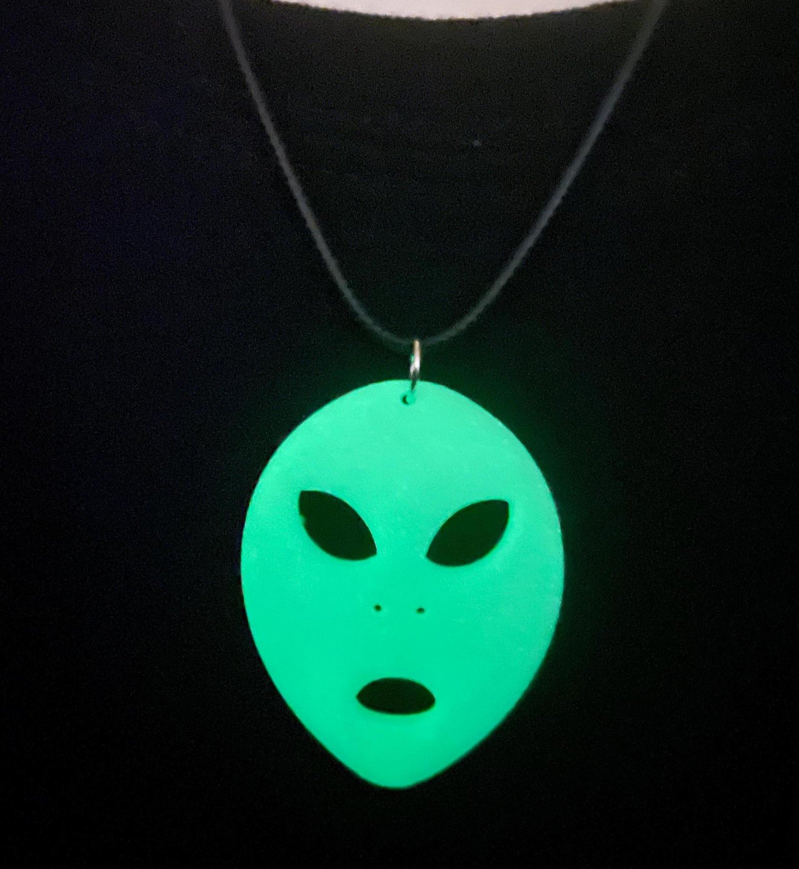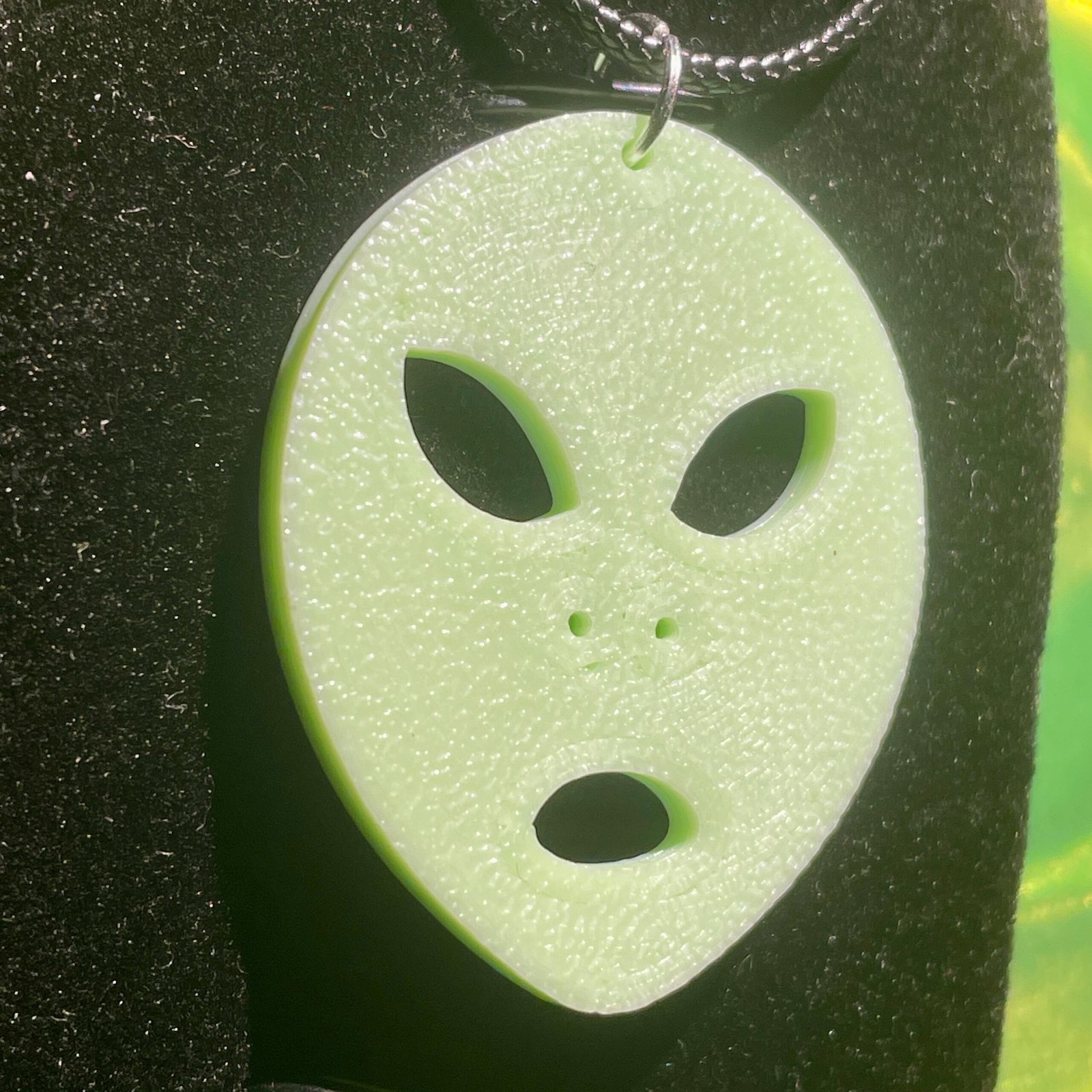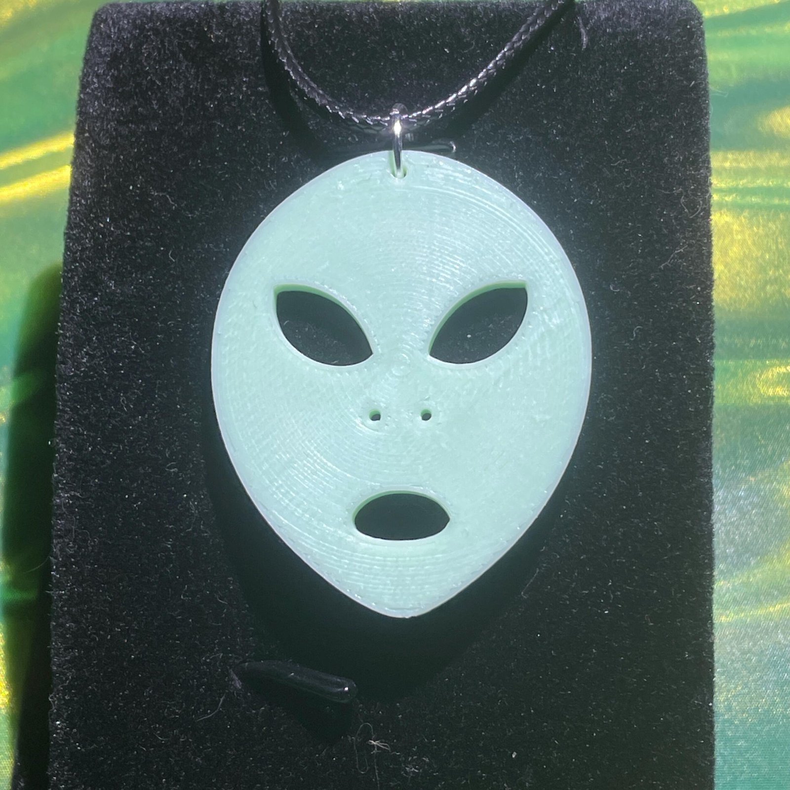 Ce pendentif alien est une création artisanale, dessinée et imprimée en 3D par mes soins. Il représente une tête d’alien au regard expressif et à la bouche légèrement étonnée, à la fois drôle et mystérieuse.
