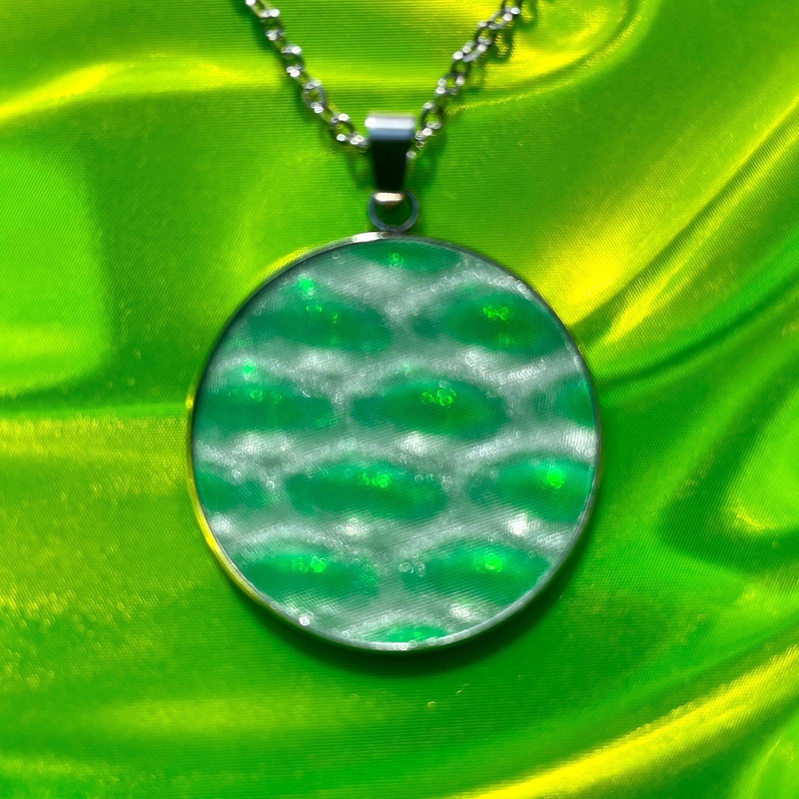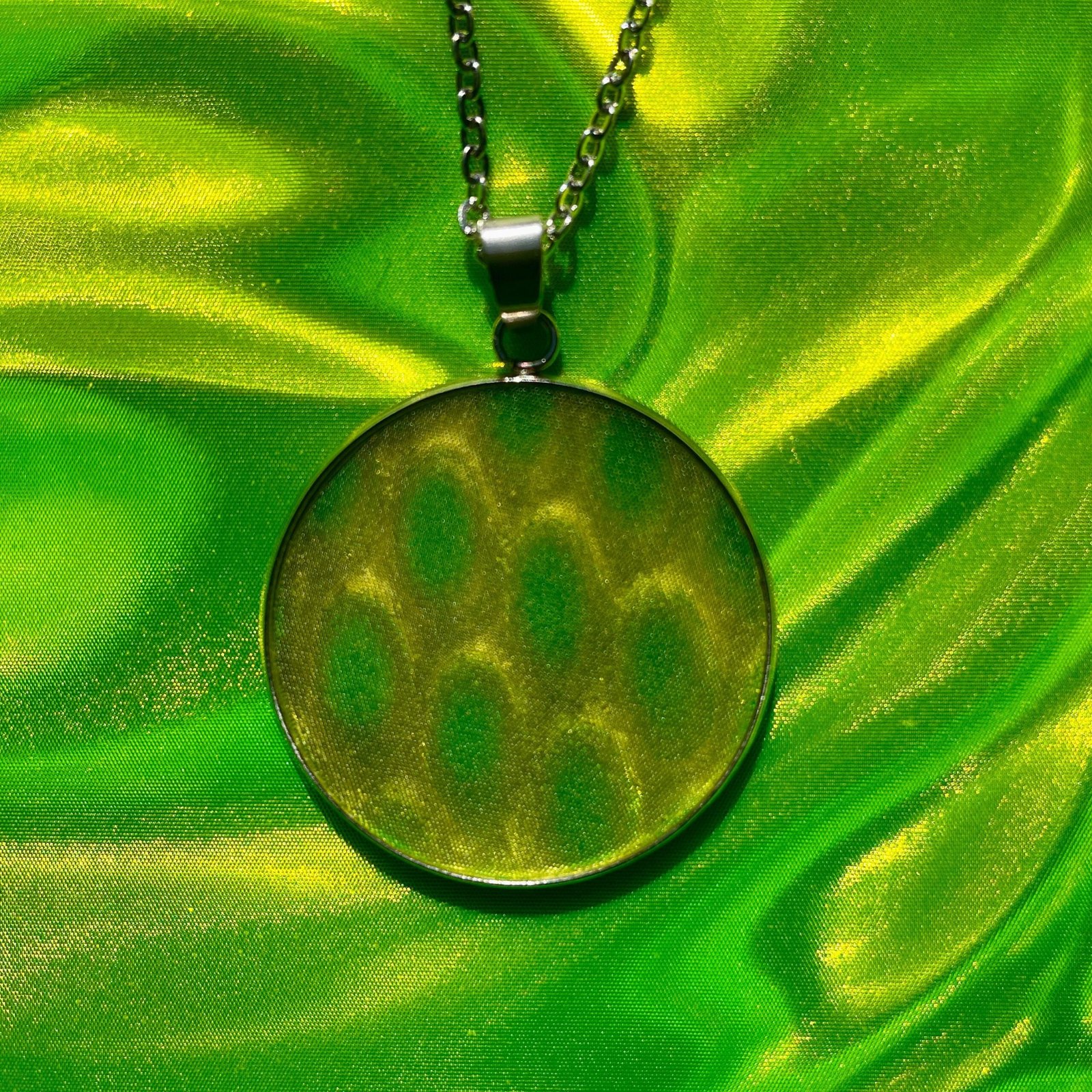 Ces pendentifs uniques utilisent un film kinétique, un matériau innovant qui crée un effet psychédélique en 3D. Le motif en forme de bulles semble se déplacer lorsque vous bougez votre regard… et si vous tournez doucement le pendentif avec votre pouce, l’orientation des bulles changera selon votre goût, une fonctionnalité qui lui donnera un petit côté fidget amusant.