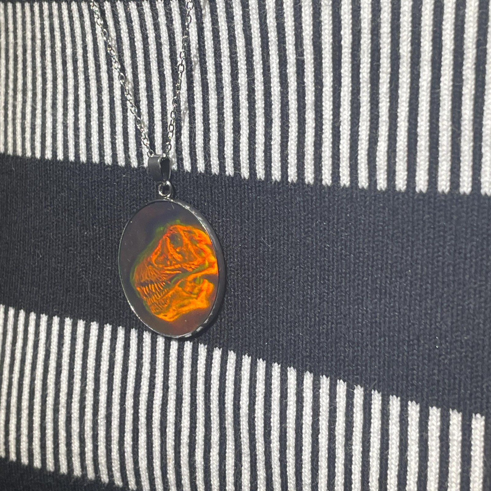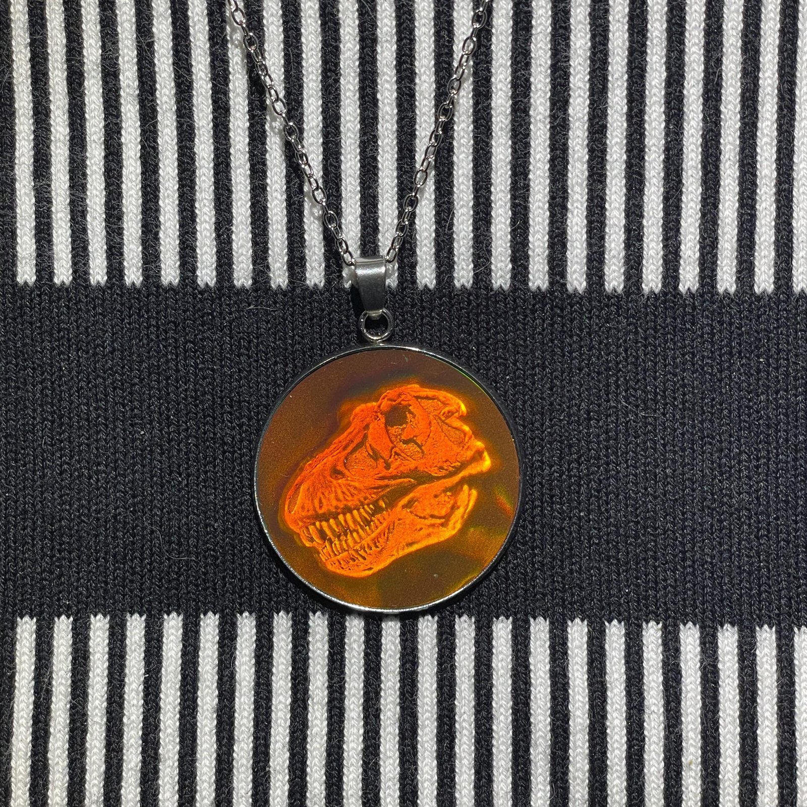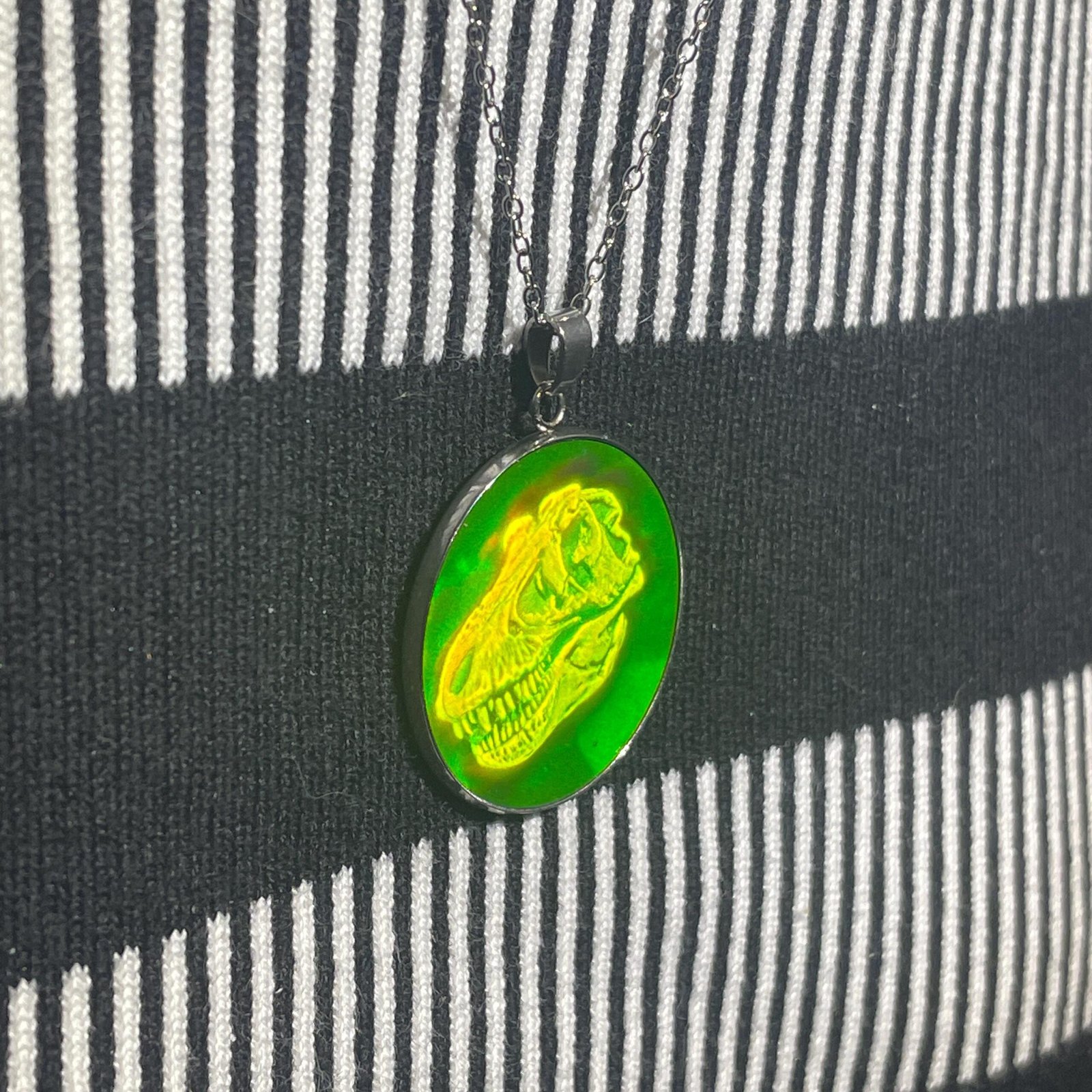 🦖 Pendentif Holographique Crâne de T-Rex 3D