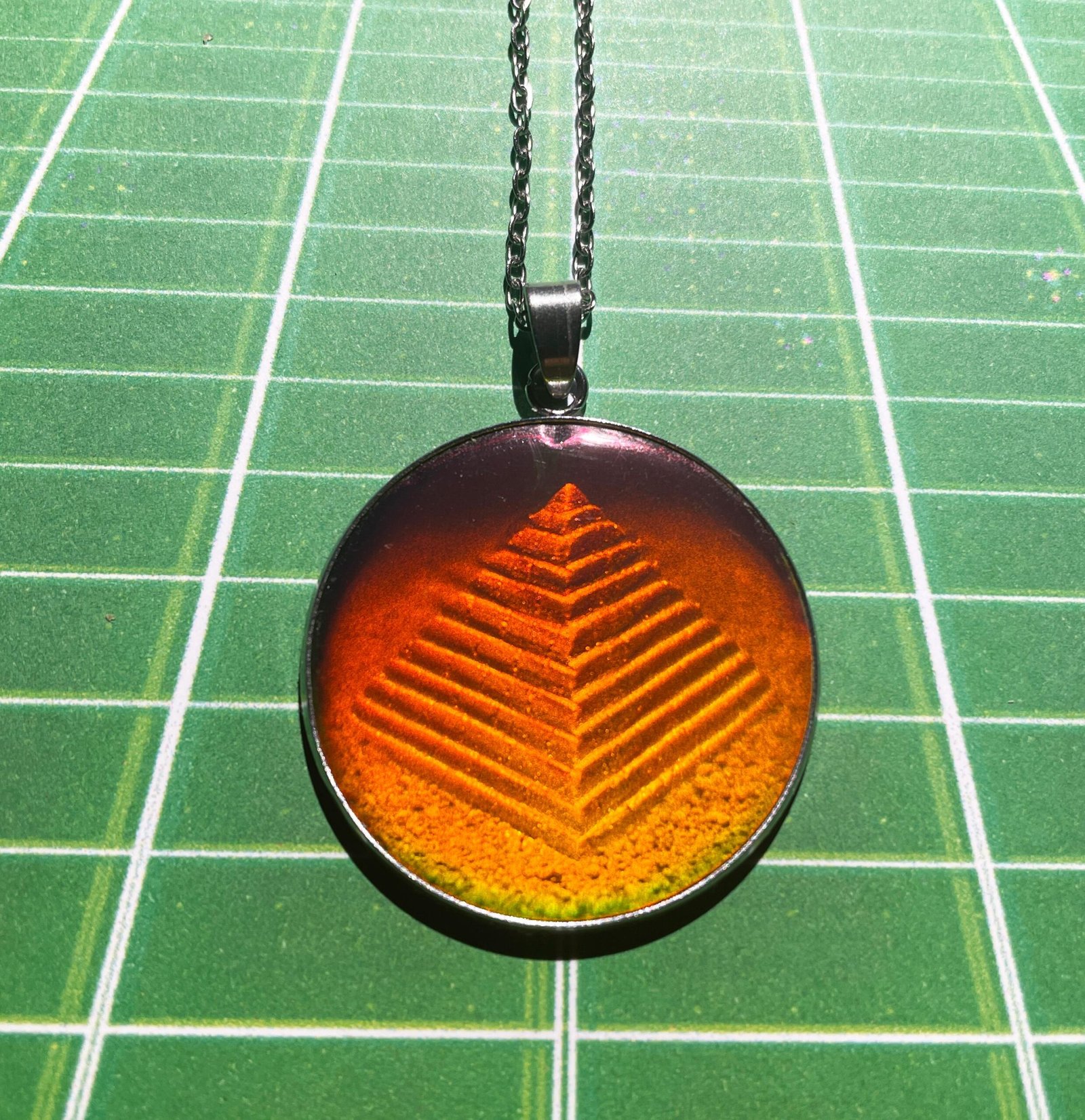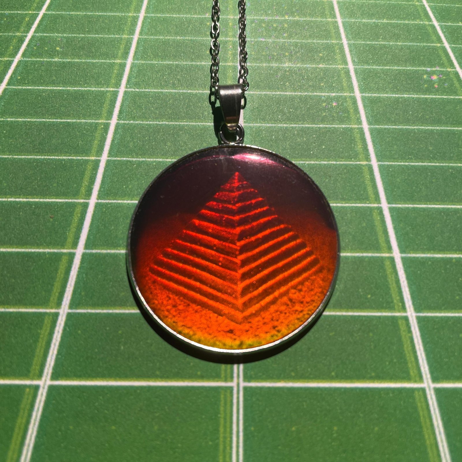 – Observez la profondeur et l’effet 3D : la pyramide semble réellement présente dans le pendentif et affiche tous ses attraits suivant l’angle de vision