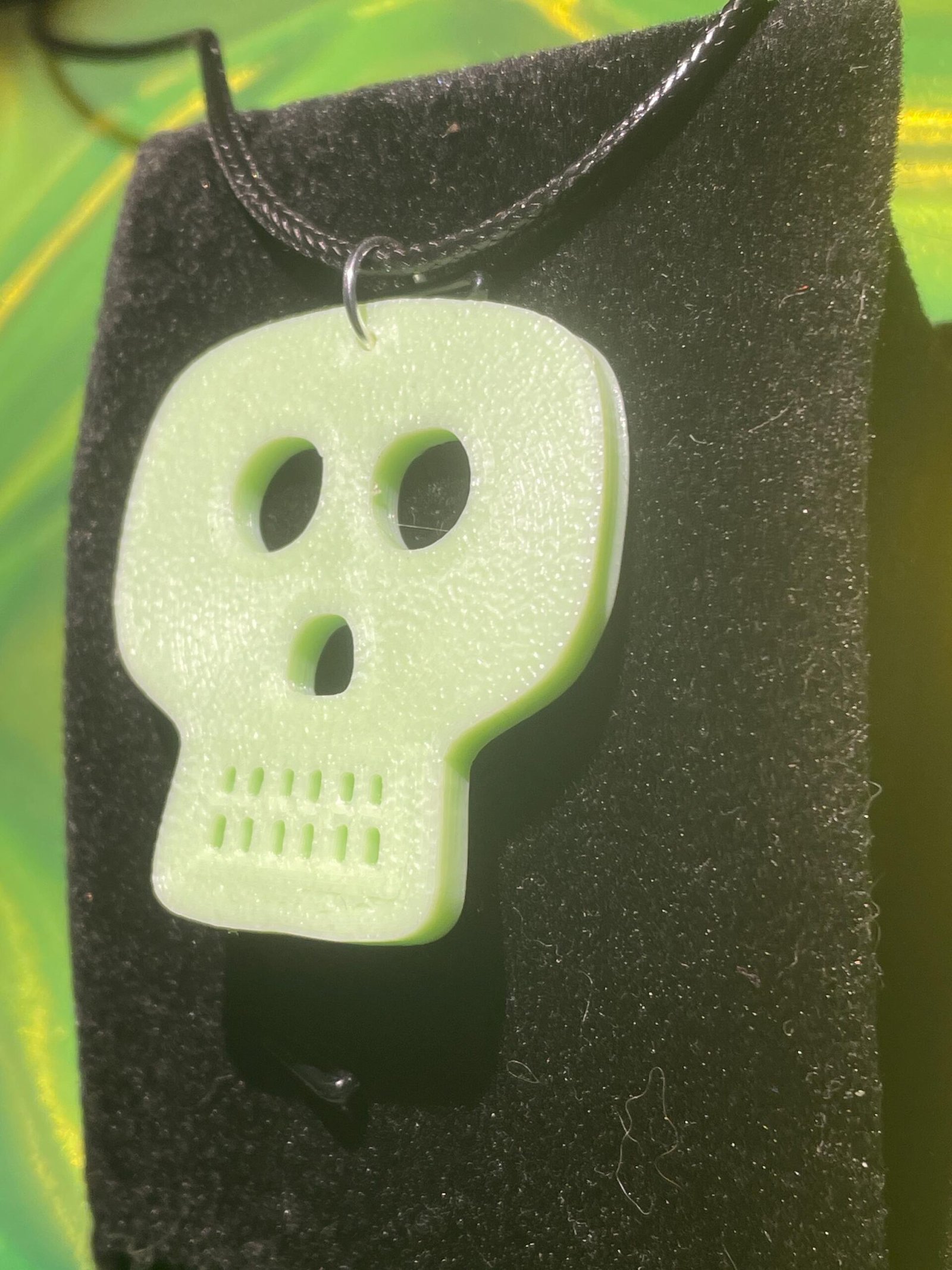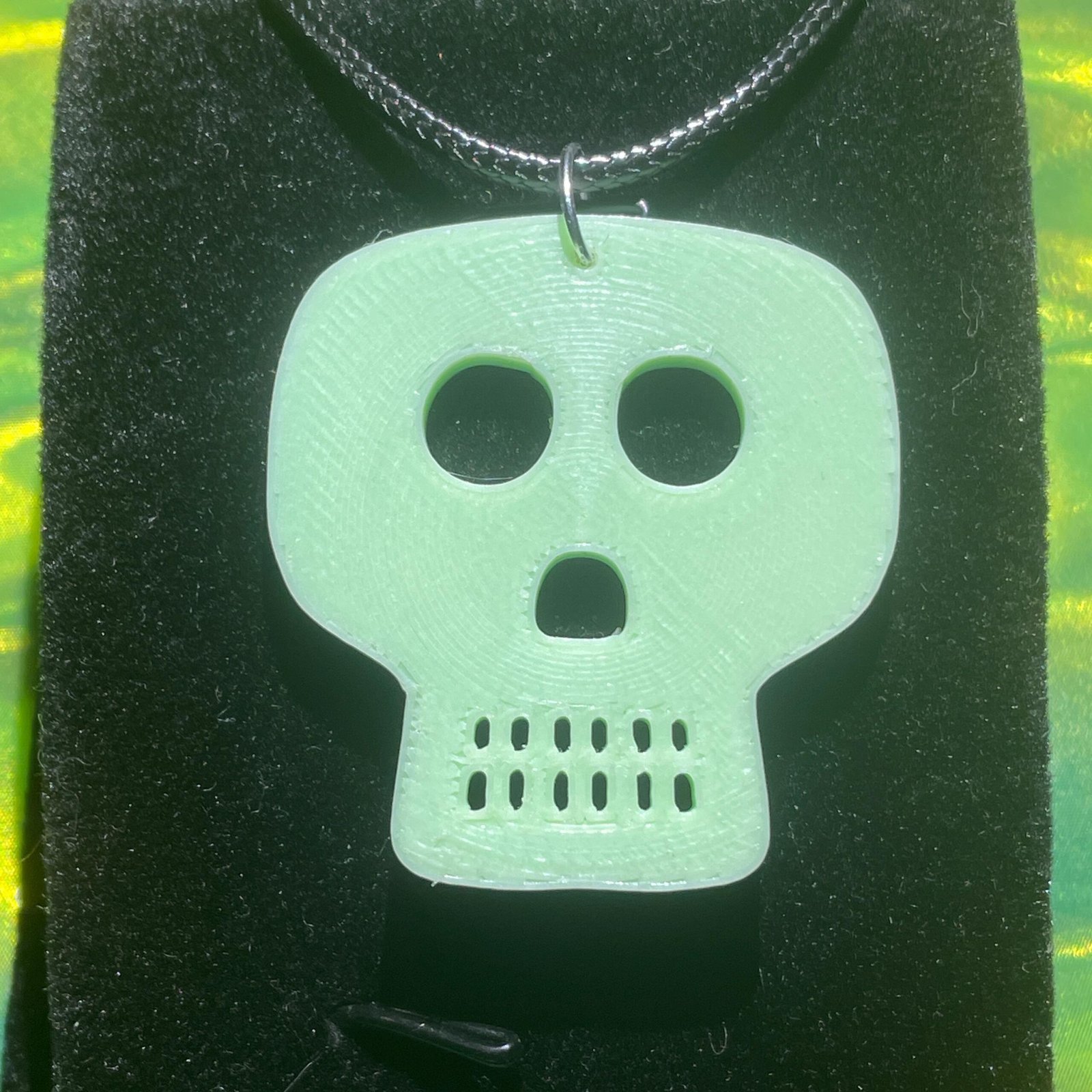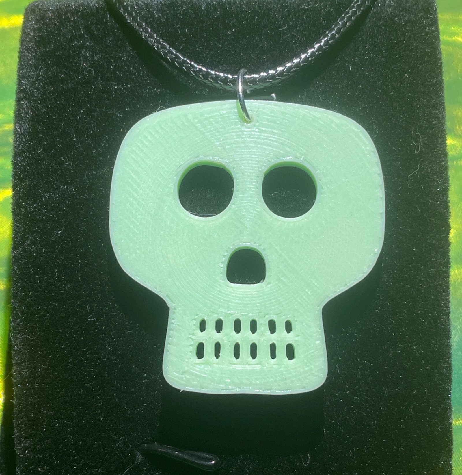 Ce pendentif tête de mort est une création artisanale, dessinée et imprimée en 3D par mes soins. Il représente une tête de mort au style naïf et minimaliste, à la fois douce et graphique.